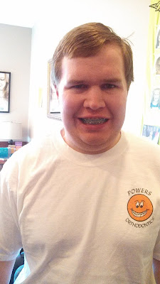 Sam got his braces off on Thursday morning, and last night, he ate corn on the cob--effectively--for the first time in his life. After dinner, he was eating an ice cream taco when I noticed he was having trouble biting through the outer shell, which was a bit on the chewy side. With his open bite now closed, he should have been able to do that.