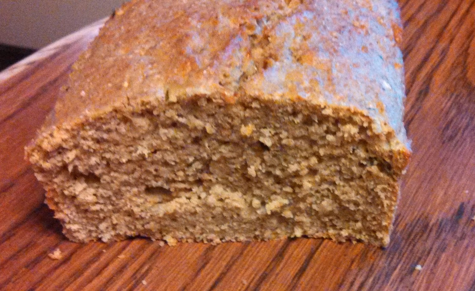 ingredients together, then bake in greased loaf pan at 350 degrees for 1 hour. This bread is still moist and delicious when toasted, but has a tendency to mold due to the high moisture content. Refrigeration is recommended.